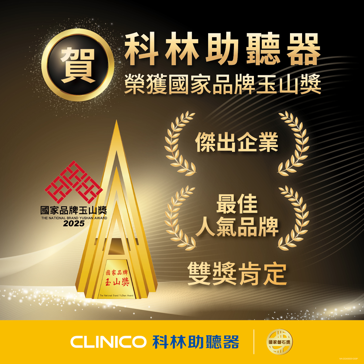 業界唯一!榮獲二項國家級殊榮肯定 在台灣邁入超高齡社會之際,聽力損失已成為影響國人健康與安全的重大議題。國際醫學期刊《刺胳針》(The Lancet)指出,在失智眾多可控風險因子中,「聽損」為最重要的風險之一。致力成為華人地區聽力保健服務第一品牌的科林助聽器,憑藉深厚的專業實力與前瞻性的整合服務,榮獲第22屆國家品牌玉山獎「傑出企業類」及「最佳人氣品牌類」雙重殊榮,肯定科林在推動全台聽力健康服務與通路創新模式上的卓越成就。科林助聽器將持續為國人提供從聽力到睡眠及保健的全方位服務,積極應對此一無聲的健康議題。