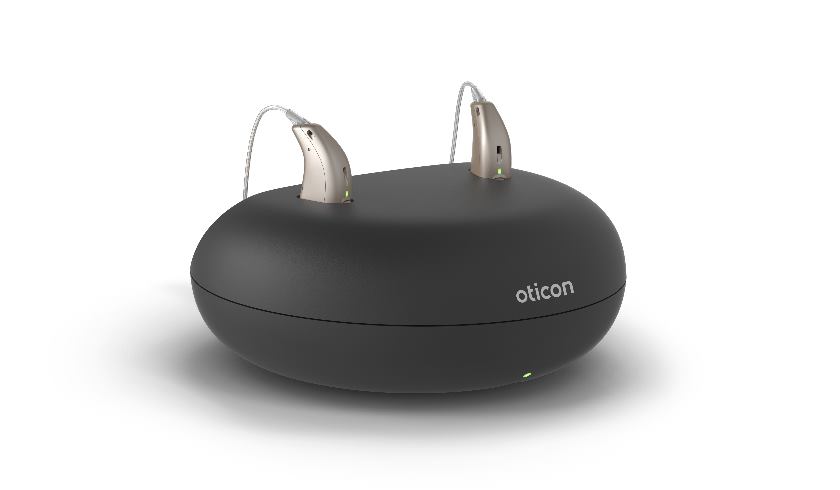 - Oticon More™充電款配備時尚外型的充電座,只需三個小時的充電時間,就足以應付您一整天的使用—在串流其他設備的情況下也是如此。