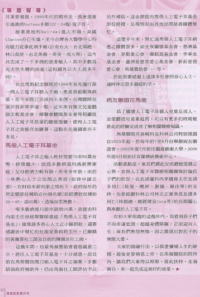 轉載自馬偕院訊雙月刊 2007年2月No.287