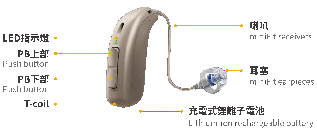 - 電池的日常性能取決於許多因素,例如助聽器的設定、聽力損失程度、環境聲豐富度、電池的使用年限以及是否串流藍牙設備。
