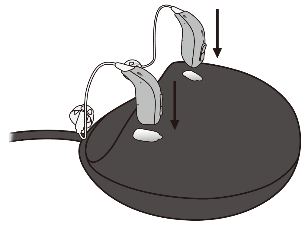 - 任何時候不使用助聽器時,都可以放入充電座進行充電。