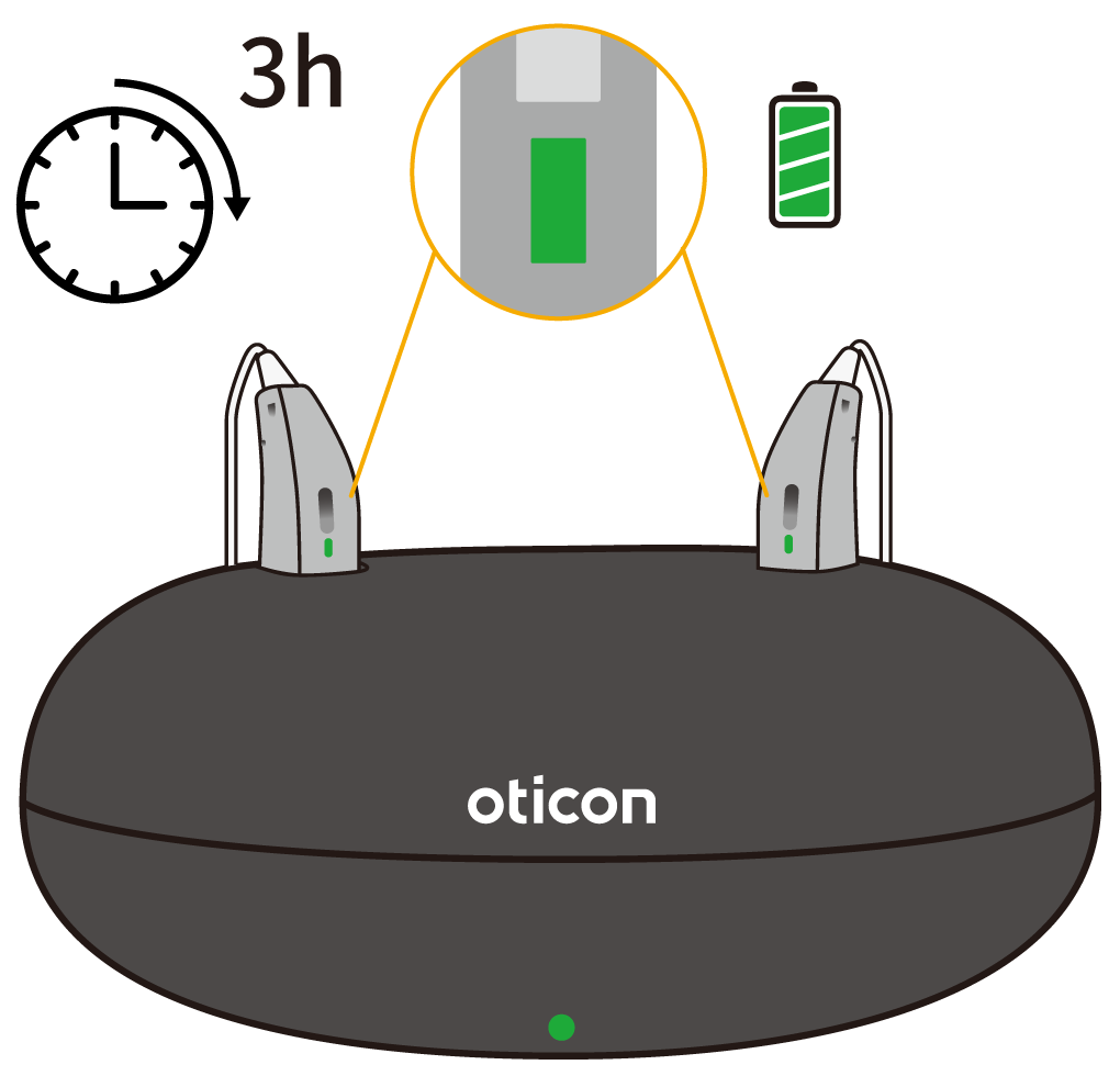 - 最佳做法是每晚為助聽器充電,因為鋰離子電池在下一個充電週期之前不需要深度放電。它們沒有像其他類型電池那樣的“充電記憶”。