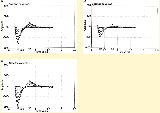 12. Brown CJ, Abbas PJ, Borland J, Bertschy MR: Electrically evoked whole nerve action potentials in Ineraid cochlear implant users: responses to different stimulating electrode configurations and comparison to psychophysical responses. J Speech Hear Res 1996;39:453-467.