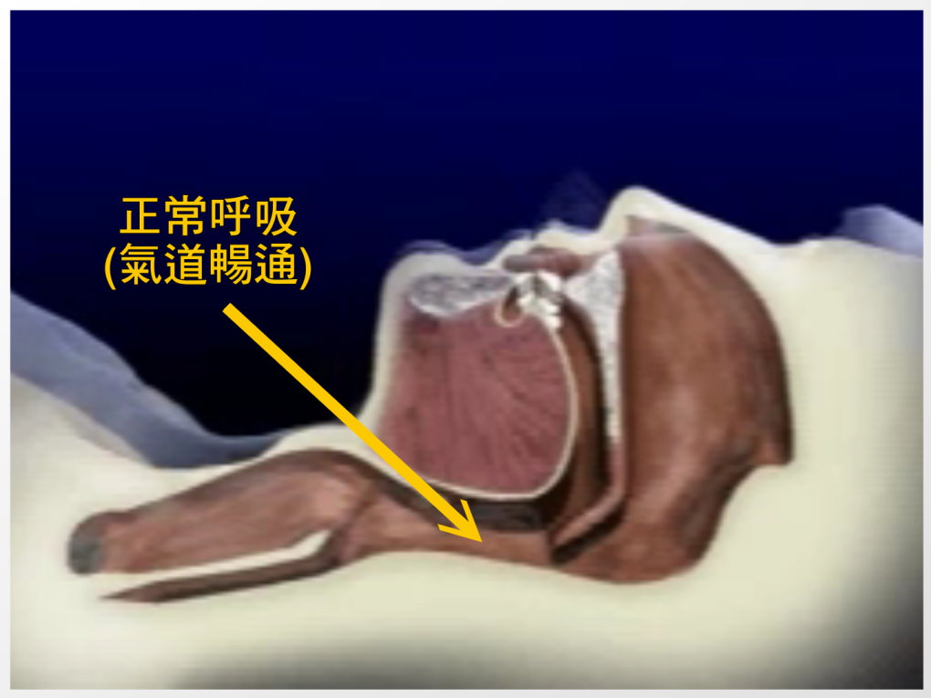 - 睡覺時呼吸道因周圍軟組織鬆弛,造成呼吸道狹窄或塌陷,呼吸就可能停止。