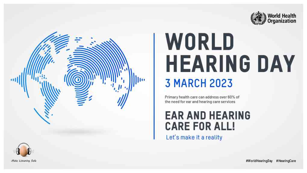 - 2023年33世界聽力日前夕,世界衛生組織WHO發表了一項關鍵訊息指出,耳朵與聽力問題是社區中最常見的問題之一,而超過60%的聽力問題是可以在初期發現和解決的。並提出將聽力保健納入初期公共衛生服務體系的建議,預期這一整合可幫助各國達到全民健康覆蓋的目標。
