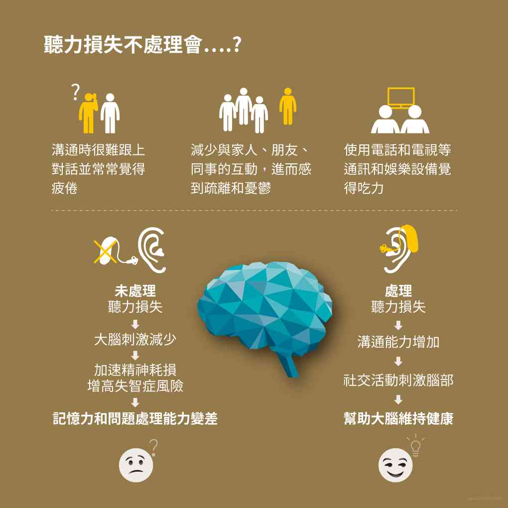 聽力損失時大腦得花許多力氣拼湊訊息,猜測對方所說的話,整天下來又累又耗費精神,也無暇記住對方說的話。即使設法跟上對話,也需要努力回想剛剛的對話內容。