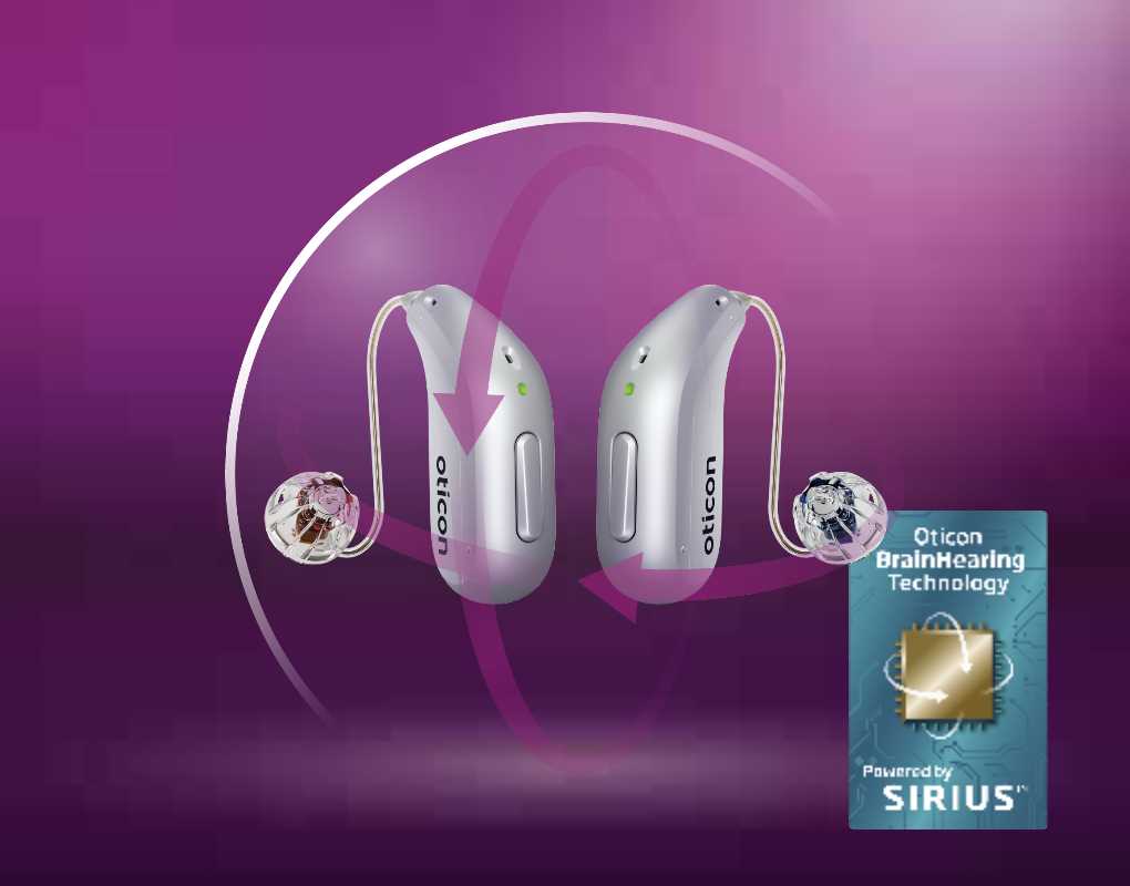 Oticon 全新的 Sirius 晶片,以腦神經聽力學為基礎,為全球首款搭載4D 感測器的人工智慧助聽器,能判斷使用者的聆聽需求,更精準地依據個人溝通目的處理環境聲音。