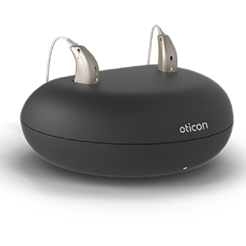 Oticon Zircon(未滅菌)的充電款助聽器設計簡潔、支援全天使用,適合追求便利或手部操作不方便的使用者。Zircon 專用充電座提供標準型與隨身型(配備行動電源功能)選項,對於頻繁出差、時常旅行或外出的使用者,也能放心使用。