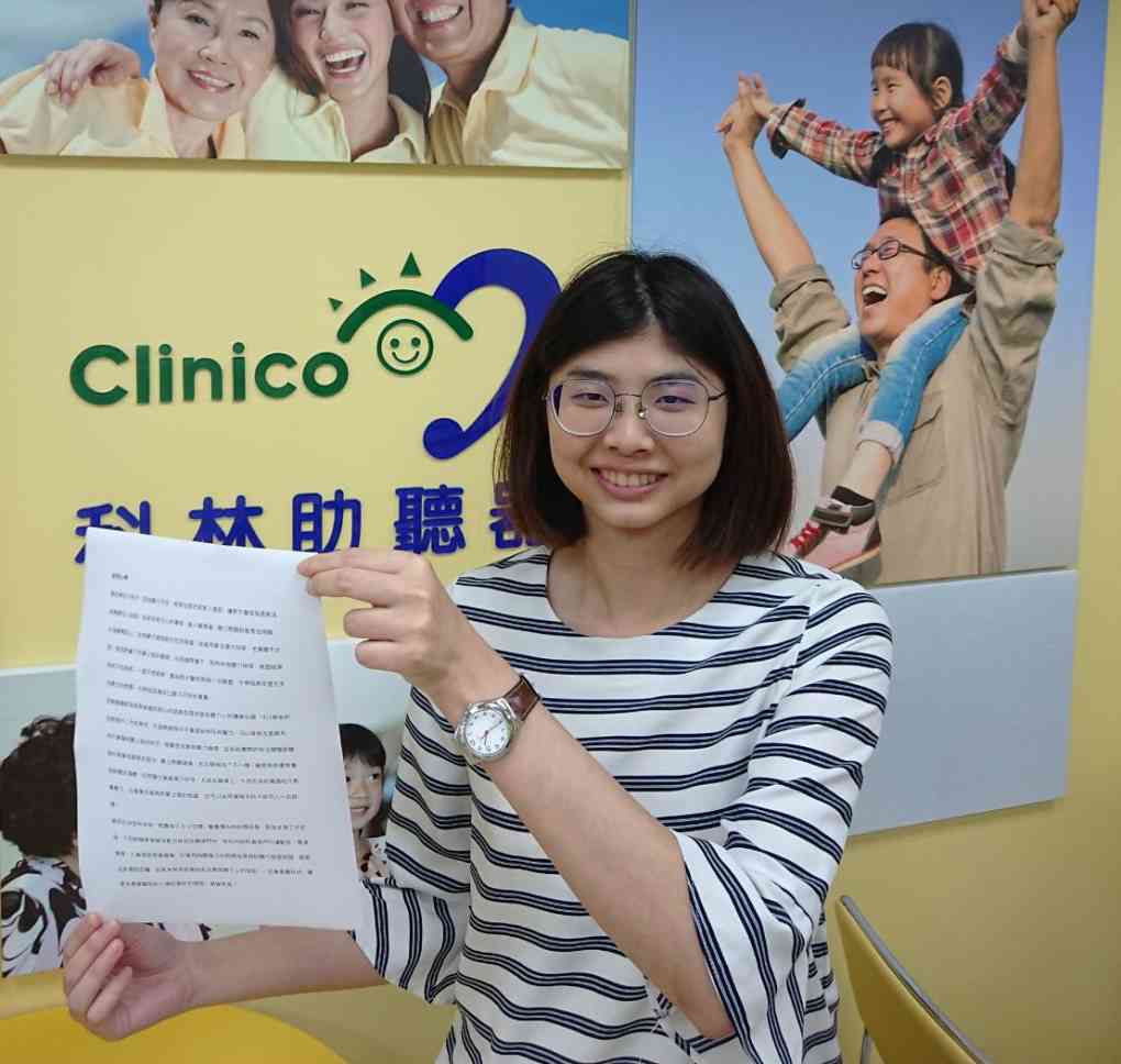 還記得從小到大,因為聽力不好,常常在朋友或家人面前,讓對方會認為是我沒認真聽別人說話,或者容易分心所導致,進入職場後,聽力問題則是愈加明顯,在接聽電話上,容易聽不清楚對方在說甚麼,或者同事從遠方叫我,也會聽不太到,甚至影響了同事之間的觀感;在因緣際會下,到科林做聽力檢查,檢查結果果然不如預期,一度不想面對,嘗試到大醫院再做一次檢查,才得知原來是先天性聽力的問題,也開始認清自己聽力不好的事實。 很感謝選配師周育威當時耐心的諮詢且提供很多聽力上的專業知識,可以感受到他對這份工作的熱忱,在諮詢過程中不會感受到任何壓力,可以像朋友般聊天,他也會隨時關心我的狀況,提醒我定期做聽力檢查,並依照實際的狀況調整助聽器的音質或細微的部分,戴上助聽器後,生活開始有了不一樣,雖然有時還是會有誤聽或漏聽,但問題也漸漸減少許多,尤其在職場上,不再因為距離遠近而影響聽力,也漸漸改善與同事之間的相處,也可以在同事聊天時不時加入一些話題。